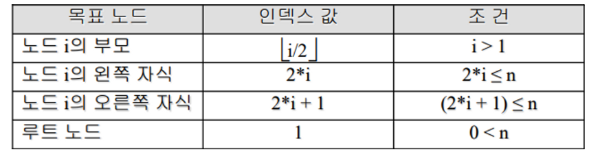 완전 이진트리 일차원 배열 표현