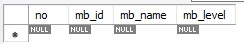 var sql = "CREATE TABLE Member (no INT AUTO_INCREMENT PRIMARY KEY, mb_id VARCHAR(255), mb_name VARCHAR(255), mb_level VARCHAR(255))";